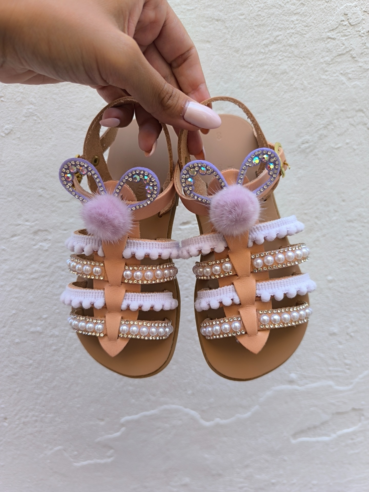 Χειροποίητο δερμάτινο παιδικό σανδάλι με αυτάκια λαγού